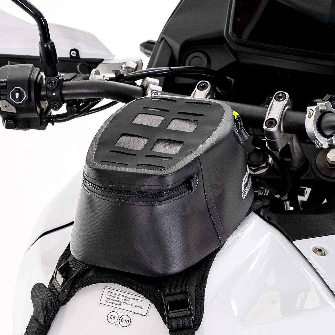 El Tank Bag Drybag FP Gris ofrece una solución práctica para transportar objetos personales directamente sobre el tanque de la motocicleta. Su capacidad de 4 litros es ideal para recorridos urbanos o salidas de aventura ligera, manteniendo tus pertenencias siempre al alcance.